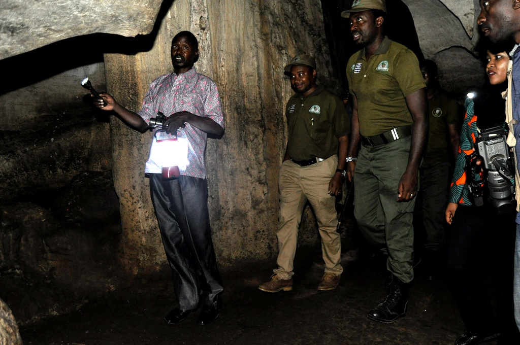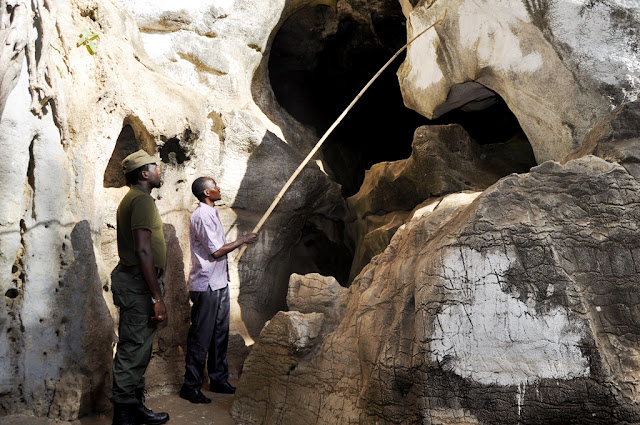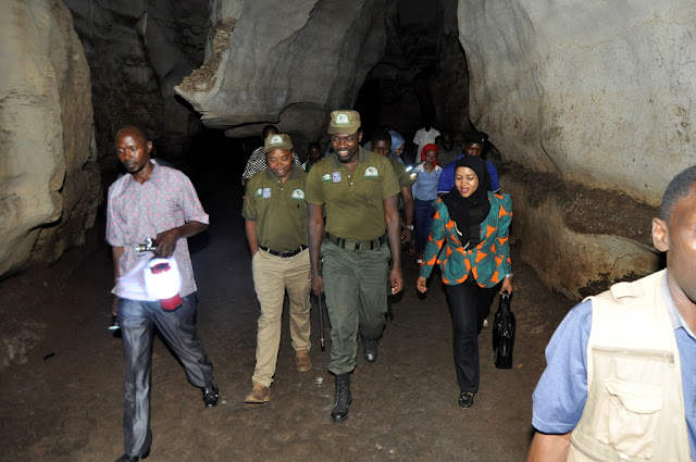 Waziri wa Maliasili na Utalii, Dk. Hamisi Kigwangalla akiongozwa na Mhifadhi Mkuu wa Kituo cha Mapango ya Amboni, Jumanne Gekora kukagua kituo hicho jana Jijini Tanga ambapo alisema Serikali itaboresha kituo hicho pamoja na vituo vingine vya Mambo ya Kale ili vichangie zaidi kwenye pato la Taifa.