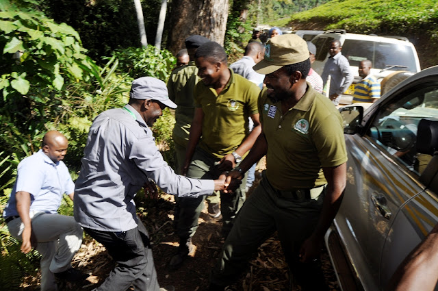 "Kwasababu sisi kazi yetu ni kuhifadhi Maliasili ambayo tumepata kama urithi wa nchi yetu, niwahakikishie kwamba tutaimarisha ulinzi kwa kuanzisha kituo cha ulinzi hapa ili askari wawe wanabadilishana na kudhibiti kabisa uharibu ambao umekuwa ukifanyika, kwasababu maji yanayotoka katika chanzo hiki yanakwenda kunywesha Muheza yenyewe na wilaya wa Tanga, tukiharibu hapa yatakosekana maji safi na salama" alisema Dk. Kigwangalla.