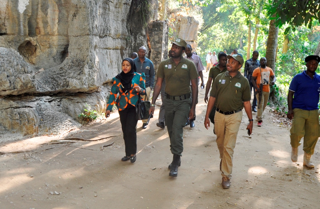 Waziri wa Maliasili na Utalii, Dk. Hamisi Kigwangalla akiongozana na Mtendaji Mkuu wa Wakala wa Huduma za Misitu Tanzania, Prof. Dos Santos Silayo kukagua Kituo cha Mapango ya Amboni wakati wa ziara yake ya kikazi Jijini Tanga jana ambapo alisema Serikali itaboresha kituo hicho pamoja na vituo vingine vya Mambo ya Kale ili vichangie zaidi kwenye pato la Taifa.