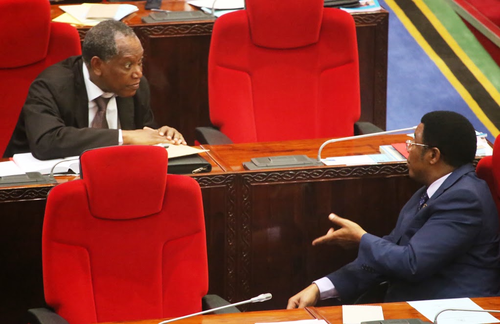 Naibu Waziri wa Maji na Umwagiliaji Mhe.Isack Kamwelwe na Naibu Waziri wa Nishati na Madini Mhe.Dk.Medard Kalemani wakifuatilia hoja mbalimbali Bungeni katika  kikao cha Ishirini na mbili cha Mkutano wa saba wa Bunge la 11 leo Mjini Dodoma Mei 11, 2017.