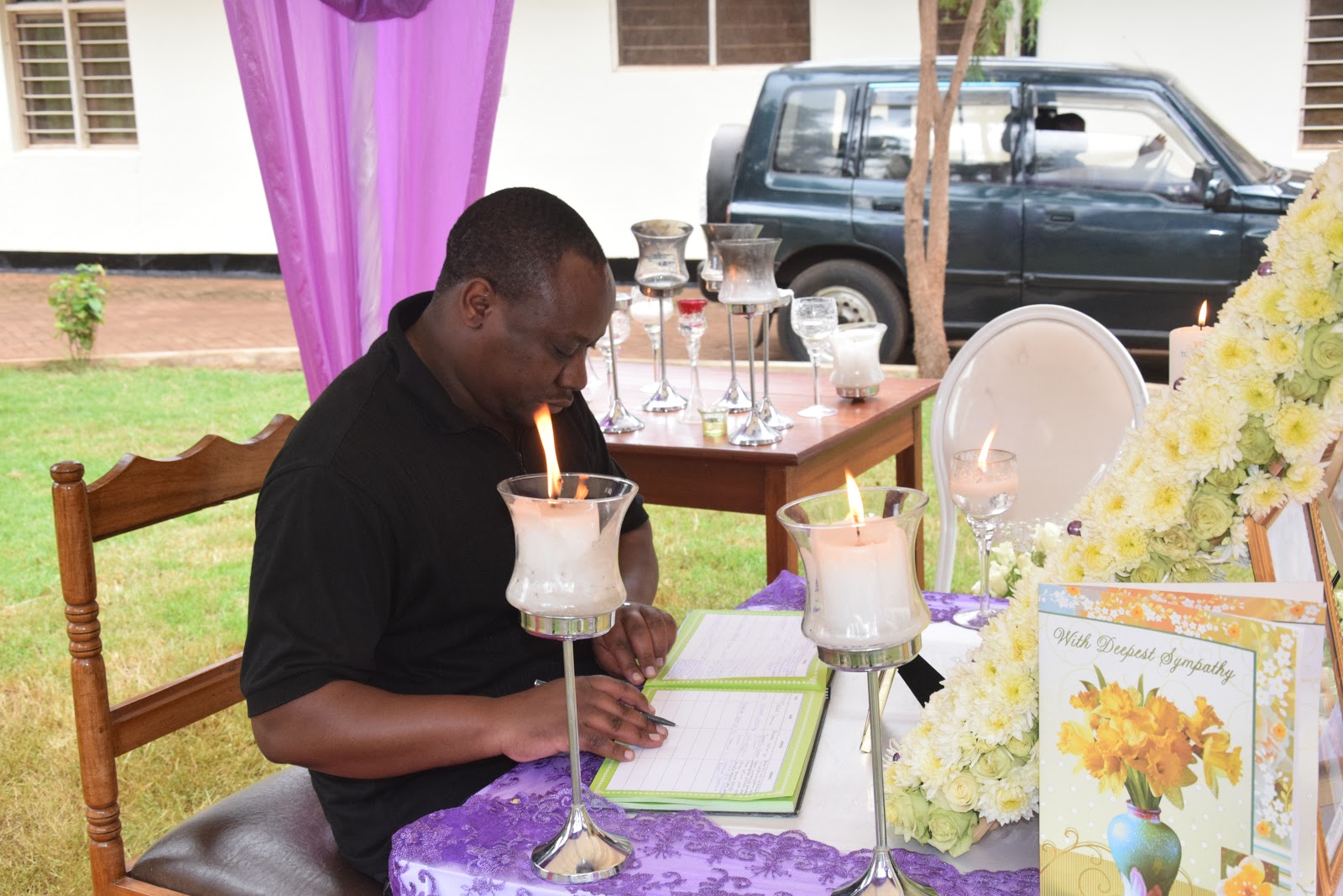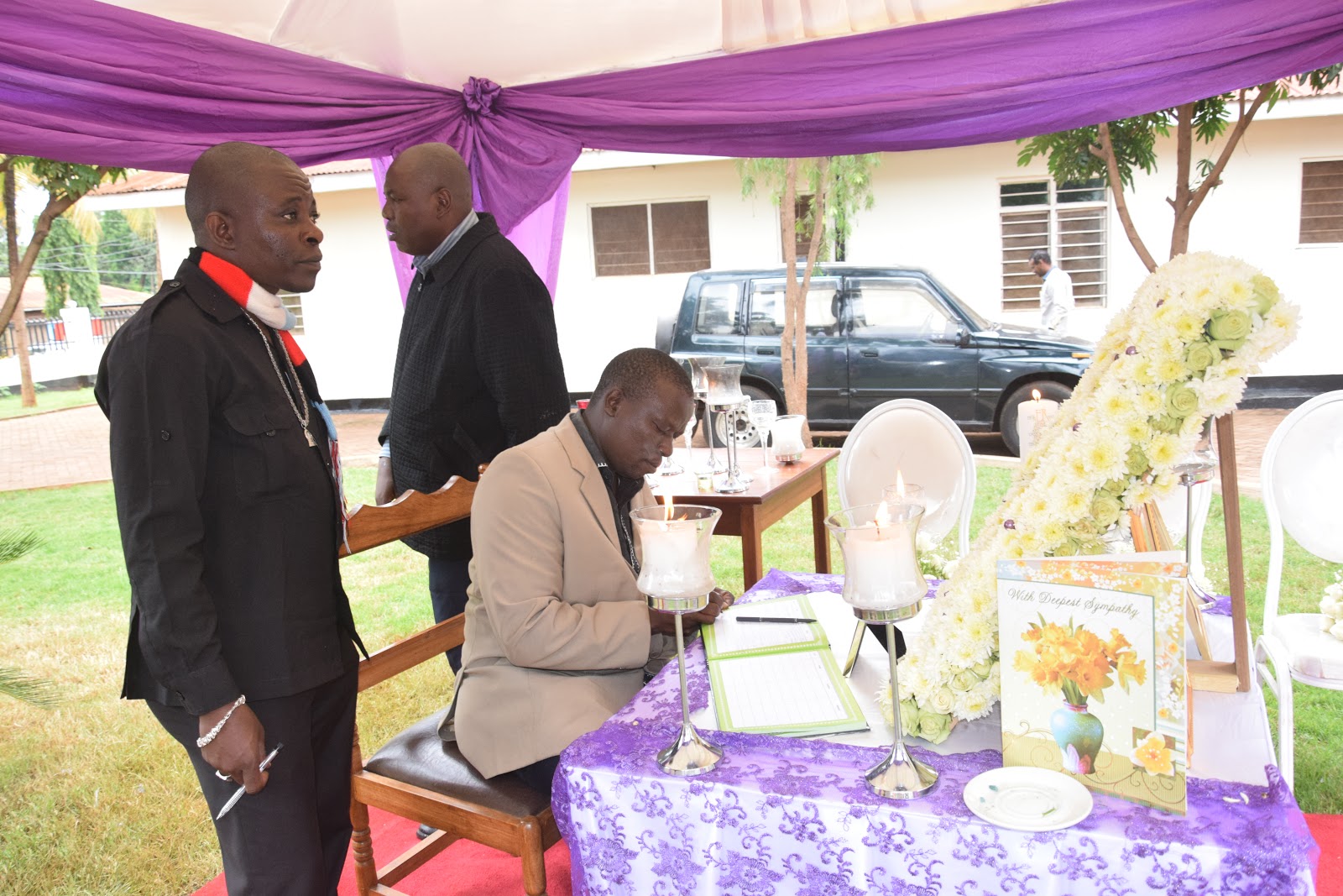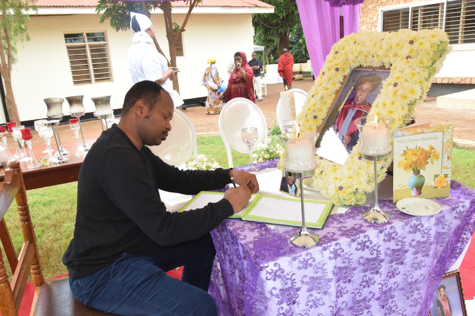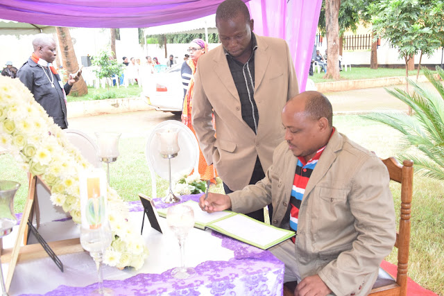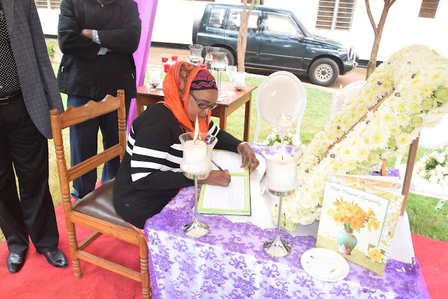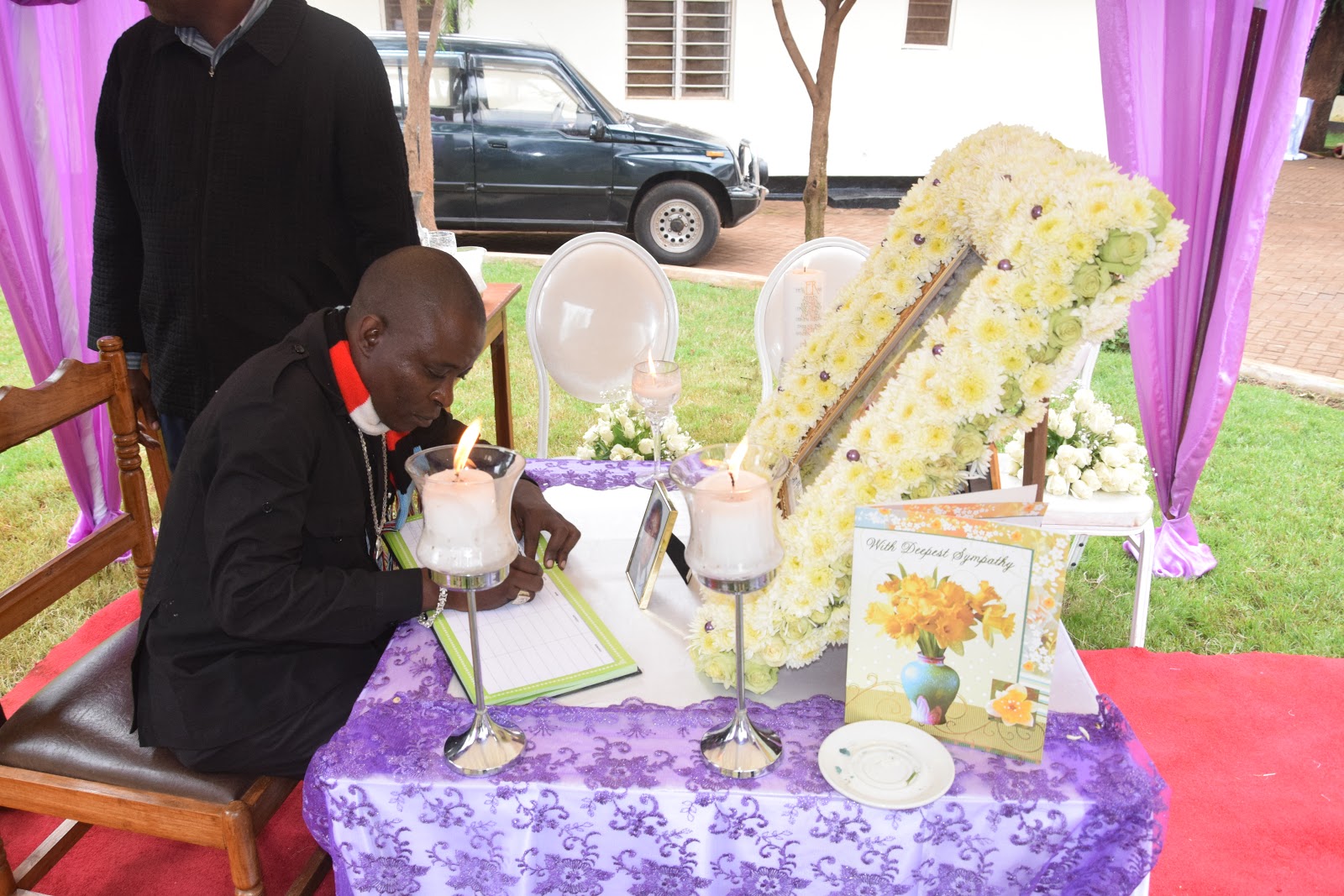 Mbunge wa jimbo la Same Magharibi ,David Mathayo David akitia saini katika kitabu cha waombolezaji nyumbani kwa marehemu Dkt Philemoni Ndesamburo.
