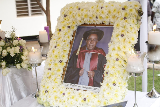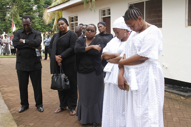 Mjane wa marehemu Ndeamburo ,Bi Ndehorio Ndesamburo (mwenye nguo za rangi nyeusi ) akionekana ni mwenye huzuni.