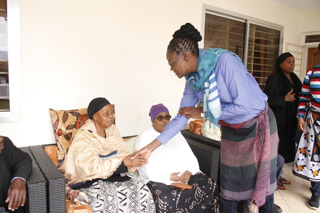 Naibu Spika wa Bunge la Jamhuri ya Muungano wa Tanzania Dkt Tulia Ackson akitoa mkono wa pole kwa mama Mjane wa Marehemu Dkt Philemoni Ndesamburo ,Ndehorio Ndesamburo alipotembelea nyumbani kwa marehemu kuifariji familia.