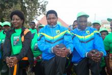 Menejimenti ya EWURA na ya Mamlaka ya Udhibiti wa Mafuta Uganda (PAU) wakiwa Eneo Huru (No man’s Land) katika mpaka wa Tanzania na Uganda (Mutukula) eneo liltakapo pita bomba la kusafirisha mafuta ghafi kwenda Chongoliani, Tanga, Tarehe 15.8.2022
