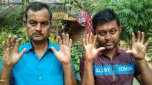 Apu Sarker alionesha viganja vya mikono kwa njia ya video akiwa nyumbani Bangladesh. Mara ya kwanza hakuna kilichoonekana tofauti lakini baada ya kutazamwa kwa karibu, ikaonekana mkono wake hauna ala zozote vidoleni.