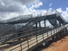 Mafundi wakiendelea na ujenzi wa daraja la juu la watembea kwa miguu eneo la Buguruni Chama, Dar es Salaam wiki hii.