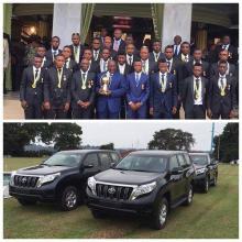 Wachezaji wa timu ya Leopards wa Jamuhuri ya Kidemokrasia ya Congo wamepewa zawadi ya magari