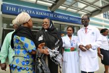 Mke wa Rais Mama Janeth Magufuli akimjulia hali Mufti Mkuu wa Tanzania