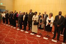 Waziri wa Mambo ya Nje na Ushirikiano wa Afrika Mashariki, Kikanda na Kimataifa, Mhe. Dkt. Augustine Mahiga akihutubia wakati akimuwakilisha Rais wa Jamhuri ya Muungano ya Tanzania Dkt John Pombe Joseph Magufuli katika Mchapalo wa Mwaka Mpya kwa Mabalozi na Wawakilishi wa Taasisi mbalimbali za Kimtaifa maarufu kama "Sherry Party" Ikulu jijini Dar es salaam leo Jumatatu February 8, 2016