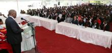 Rais wa Jamhuri ya Muungano wa Tanzania Mheshimiwa Dkt. John Pombe Magufuli akiangalia ukarabati unaondelea katika barabara kuu ya Morogoro-Dodoma eneo la Kibaigwa, sehemu ya barabara hiyo inakarabatiwa chini ya usimamizi wa Wakala wa Barabara nchini TANROADS