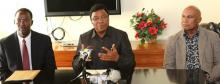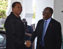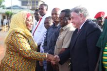 Makamu wa Rais wa Jamhuri ya Muungano wa Tanzania Mhe. Samia Suluhu Hassan, akiagana na Mkurugenzi Mkuu wa Kampuni ya Geita Gold Mining Terry Melpeter kwenye Uwanja wa Ndege wa GGM Geita baada ya kukamilisha ziara ya siku mbili ya kukagua na kuzindua miradi ya maendeleo ya wananchi Mkoani humo leo.