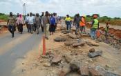 07 February 2016 Rais wa Jamhuri ya Muungano wa Tanzania Mheshimiwa Dkt. John Pombe Magufuli akiangalia ukarabati unaondelea katika barabara kuu ya Morogoro-Dodoma eneo la Kibaigwa, sehemu ya barabara hiyo inakarabatiwa chini ya usimamizi wa Wakala wa Barabara nchini TANROADS
