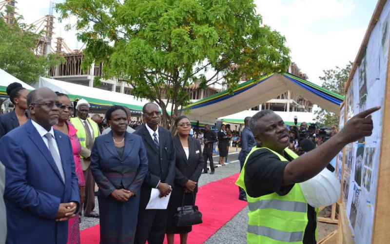 21 October 2016 | Tanzania Rais wa Jamhuri ya Muungano wa Tanzania Dkt. John Pombe Magufuli leo tarehe 21 Oktoba, 2016 ameweka jiwe la msingi katika mradi wa ujenzi wa mabweni 20 ya wanafunzi wa Chuo Kikuu cha Dar es Salaam yenye uwezo wa kuchukua wanafunzi 3,840 ikiwa ni utekelezaji wa ahadi aliyoitoa Mwezi Juni mwaka huu wakati wa sherehe za uzinduzi wa ujenzi wa maktaba ya kisasa ya chuo hicho.