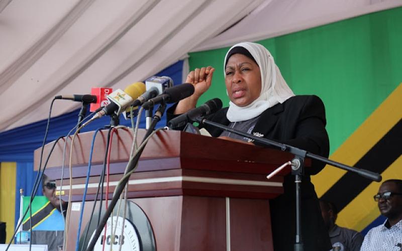 Makamu wa Rais wa Jamhuri ya Muungano wa Tanzania Mhe. Samia Suluhu Hassan, akihutubia kwenye uzinduzi wa kampeni ya LONGA NASI inayomaanisha Sema au ongea na TAKUKURU kwa kutoa Taarifa za watu wanaotoa rushwa au kupokea rushwa kwaajili ya kuboresha mapambano dhidi ya Rushwa ambapo uzinduzi huo umeambatana pamoja na uzinduzi wa matumizi mapya ya simu ya Dharura ya 113 unayoweza kupiga na kutuma sms za kawaida  Uzinduzi huo umefanyika leo  katika viwanja vya Mwembe Yanga Temeke jijini Dar es salaam.