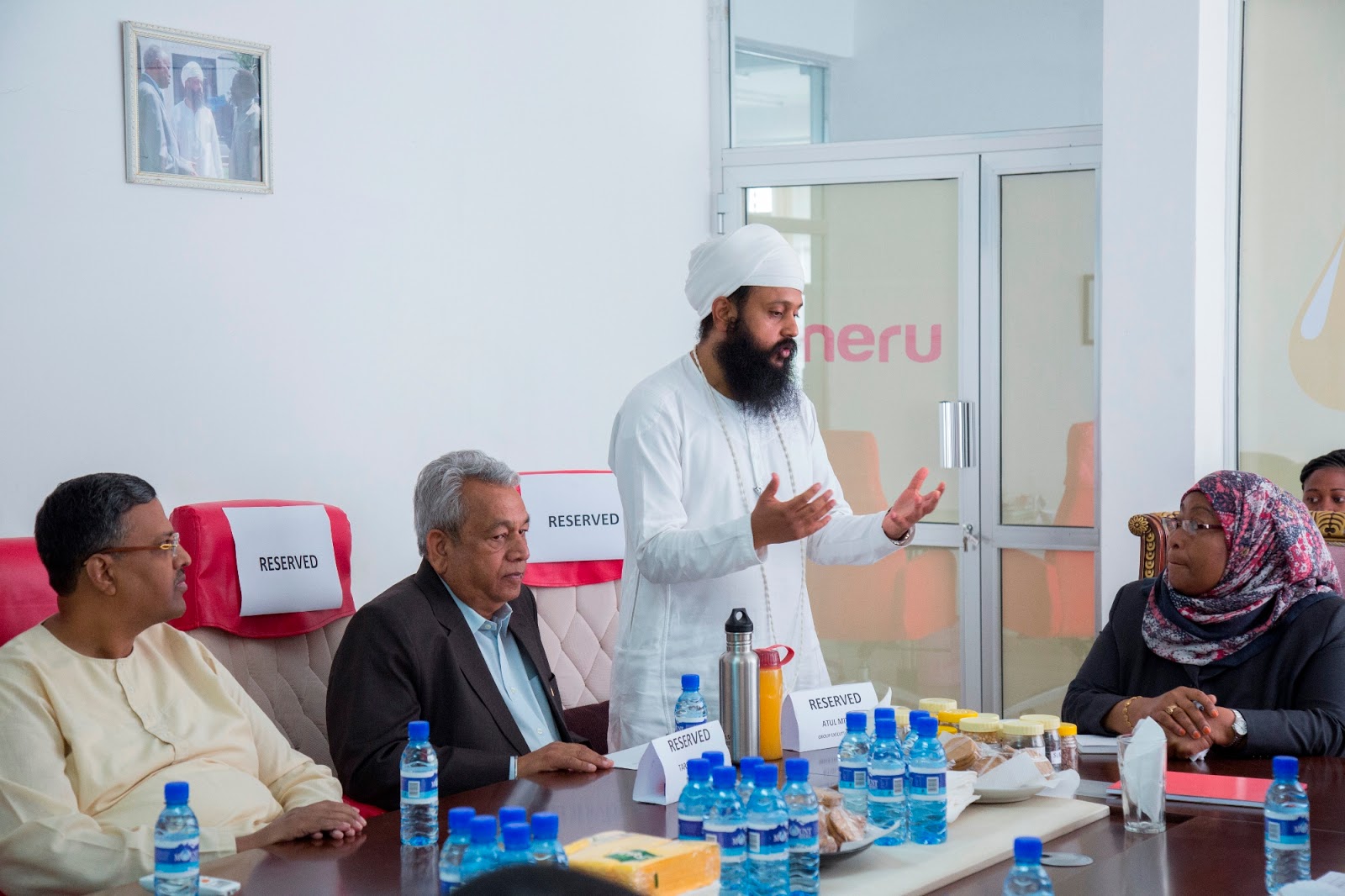 Mkurugenzi Mtendaji wa Makampuni ya Mt. Meru Bw. Atul Mittal akitoa taarifa kwa Makamu wa Rais wa jamhuri ya Muungano wa Tanzania Mhe. Samia Suluhu Hassan juu ya maendeleo ya kiwanda pamoja na changamoto wanazokutananazo wafanyabiashara wazawa.