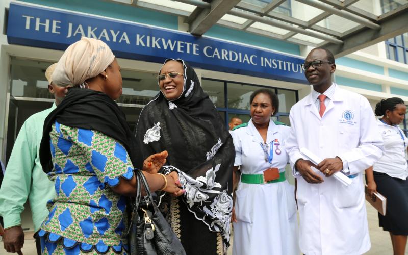 Mke wa Rais Mama Janeth Magufuli akimjulia hali Mufti Mkuu wa Tanzania