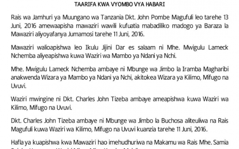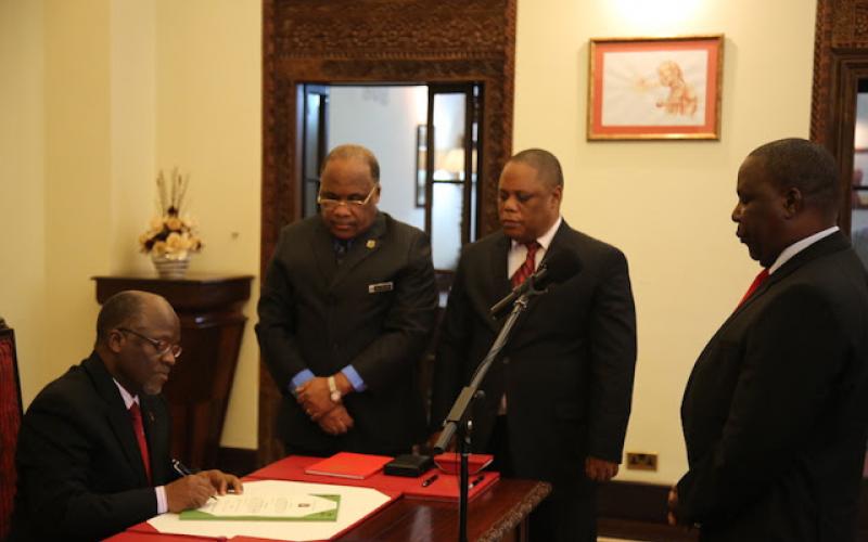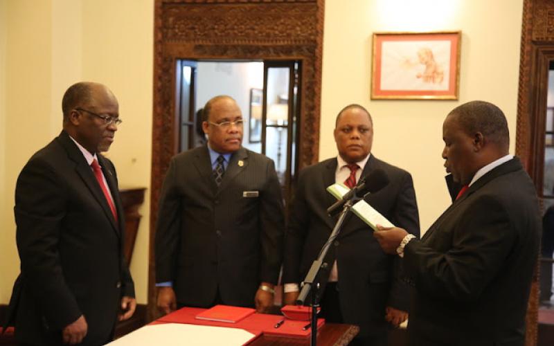 Home » Tanzania » Rais Dkt. John Pombe Magufuli amwapisha Dkt. Charles Tizeba kuwa Waziri wa Kilimo, Mifugo na Uvuvi