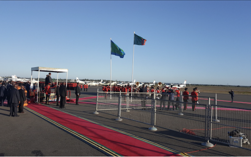 Katika Uwanja wa Ndege wa Kimataifa wa Mwalimu Julius Nyerere Jijini Dar es Salaam, Rais Lungu amepokelewa na mwenyeji wake Rais Magufuli na kulakiwa na viongozi mbalimbali wakiwemo Makamu wa Rais wa Jamhuri ya Muungano wa Tanzania Mhe. Samia Suluhu Hassan, Mabalozi wanaowakilisha nchi mbalimbali hapa nchini pamoja na wananchi.