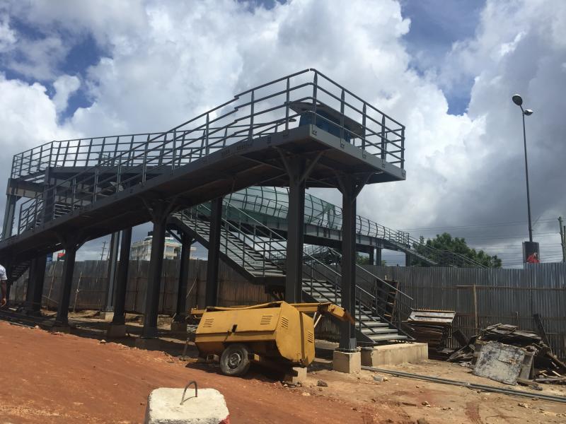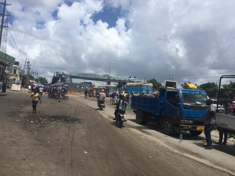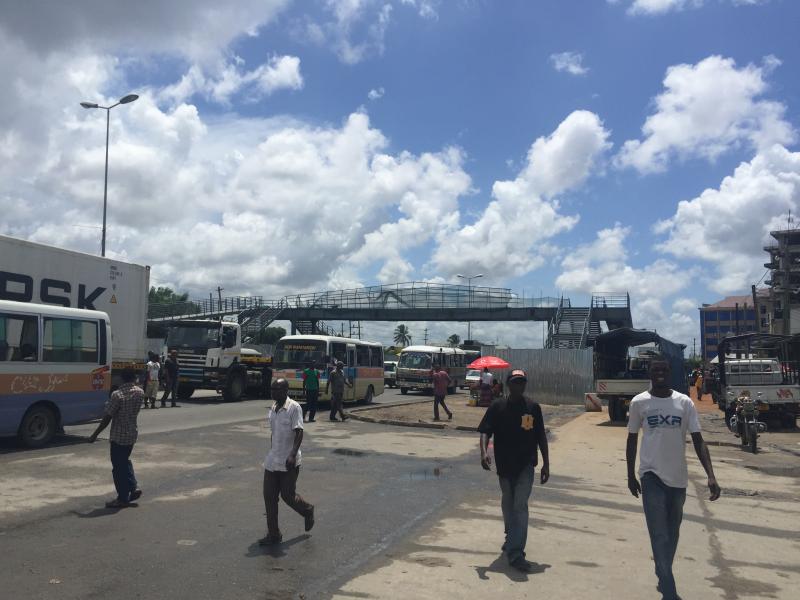 12 April 2016 | Tanzania Mafundi wakiendelea na ujenzi wa daraja la juu la watembea kwa miguu eneo la Buguruni Chama, Dar es Salaam wiki hii.